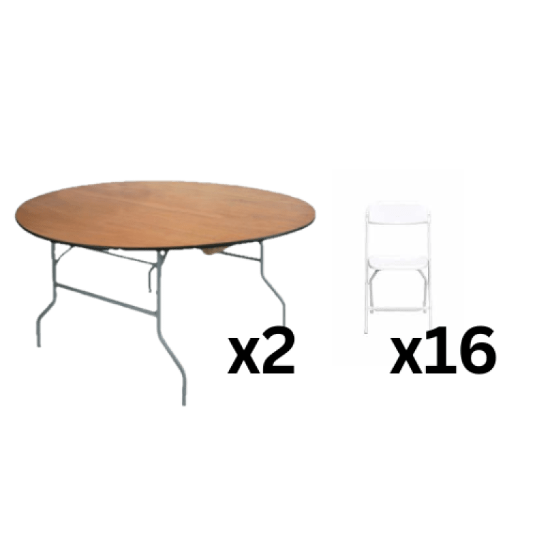 16 Guest SeatingWhite Folding Chair & 60 in Round Table Seating Package:16 Guest Seating102588003_2909193_29170781000 A complete seating setup with enough chairs for up to sixteen guests, perfect for keeping everyone comfortable during meals, meetings, or special gatherings.