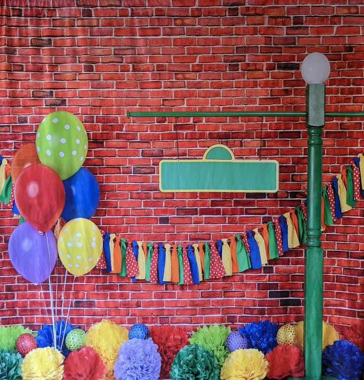 Sesame Street Themed BackdropChoice of Backdrop:Sesame Street Themed Backdrop1 This cute backdrop is great for photos at your kids party or event. Backdrop stand not included