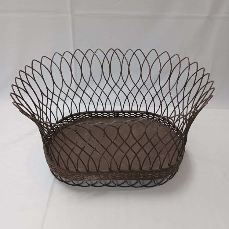 Rustic brown metal wire basket - 9 in tall, 15.5 in across