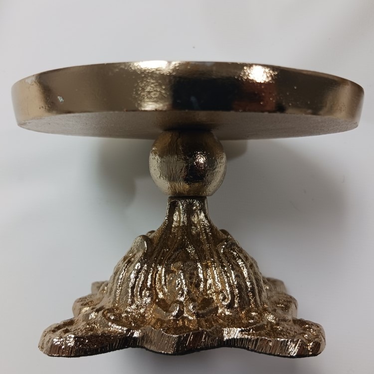 Display case for serving with removable glass lid and detailed golden base - 8 in tall, 3 in tall without lid, 4.5 in across