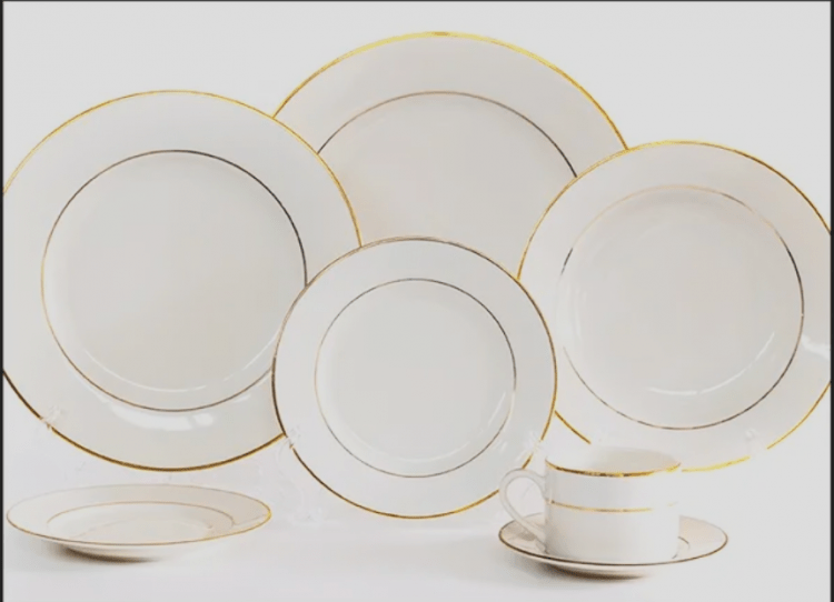 White Salad / Dessert Plate w/ Double Gold Trim (Set of 10)