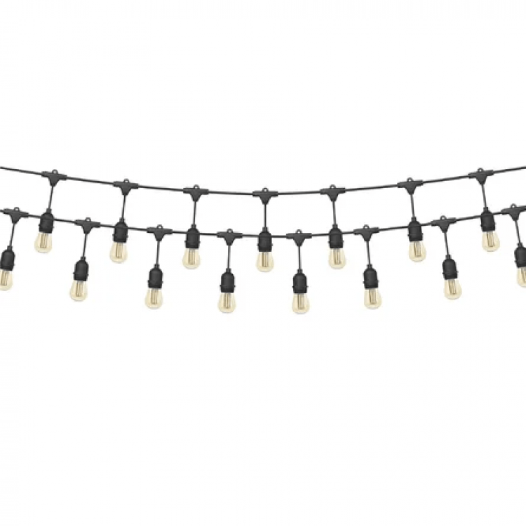 Black wired bistro lighting strands for 10x20 tent ceiling framework. (60 ft)